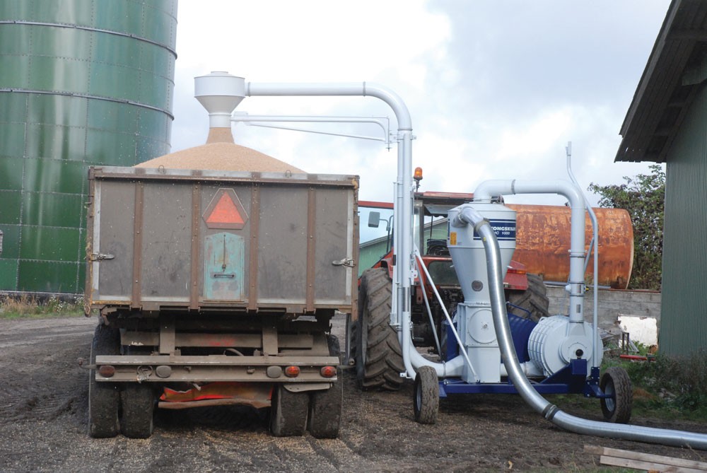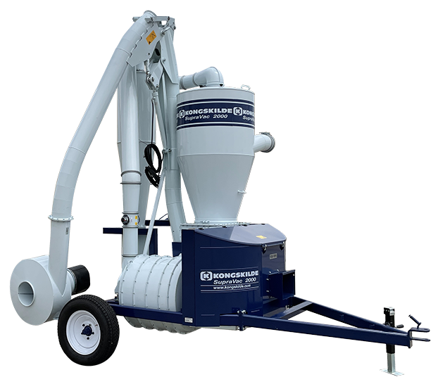 A szállítókocsival rendelkező SupraVac 2000 közvetlenül a traktorra kapcsolható. A gyors munkába állás menete: a hidraulikus állítású kiömlő csövet munkahelyzetbe állítjuk, a szívó oldalt csatlakoztatjuk a csőrendszerre és a SupraVac 2000 már töltheti is a szállítójárművet a gabonatárolóból. Amennyiben a nyomó oldalt meg kell hosszíbbítani, ajánlatos a kiömlő cső alátámasztása.