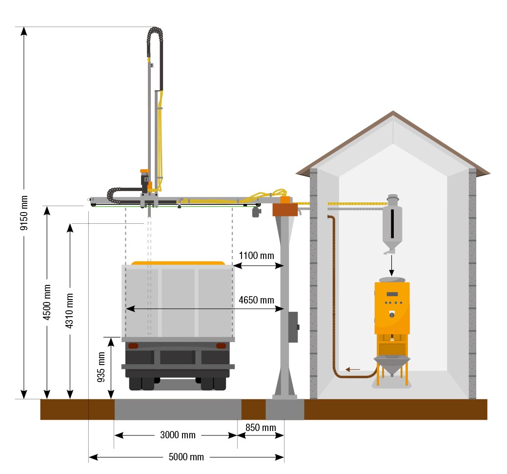 - Az automatikusan beállítható osztási arányú mintaválasztó növeli a mintavétel gazdaságos hatékonyságát azáltal, hogy a minta feleslegét visszahelyezi a teherautóba.